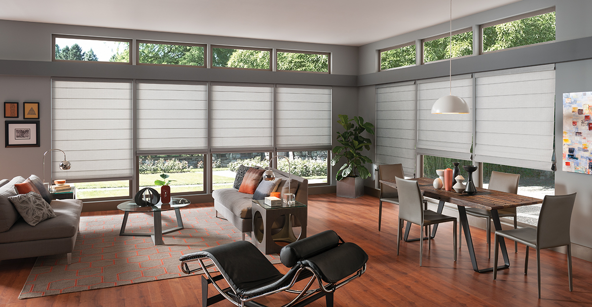 Roman Shades are the perfect way to create a classic and beautiful look to your home. Soft roman fabrics in a hobble roman shade creates luscious folds for a rich drapery appearance. Flat Panel Roman shades offer a great contemporary appeal and is available in every roller fabric. Available as cord lock, cord loop and cordless options, and with the Top Down-Bottom Up feature perfect for bedrooms, there is a perfect roman shade for every room in the home.