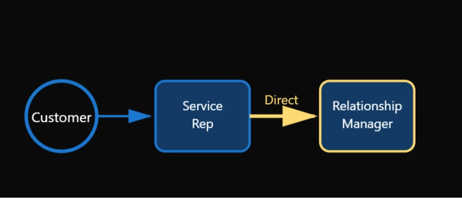 A customer initiates a chat with a general banking question, such as loan eligibility. As the conversation progresses, it becomes clear that the Relationship Manager (RM) is the right person to guide the customer further. The representative performs a Direct Transfer to the customer’s assigned RM.