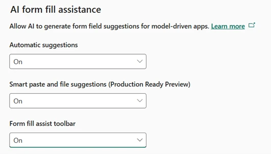 - Form fill assist toolbar. Changes apply to model-driven apps once saved.