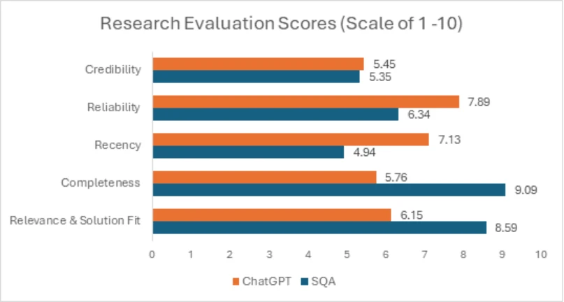 The technical blog details which metrics SQA excels at relative to ChatGPT, where it falls short, and why.