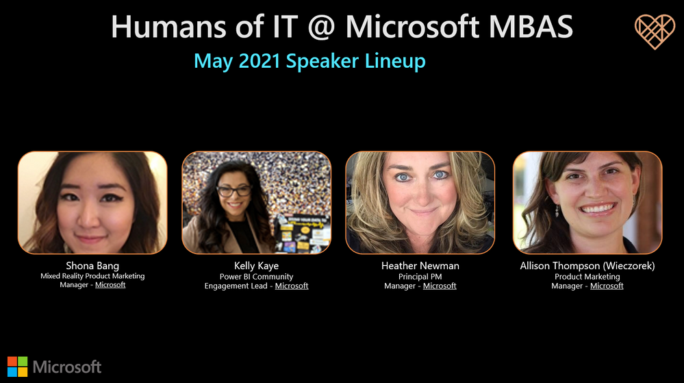 Nearly 100 attendees came together virtually to hear from tech for good storytellers who have shared their passions and inspired others in our community through the Humans of IT community. Along with our community members, Allie Thompson, Humans of IT Community and Office Apps and Service MVPs lead, spoke with Shona Bang, Heather Newman, and Kelly Kaye about the origin story and impact of Humans of IT.