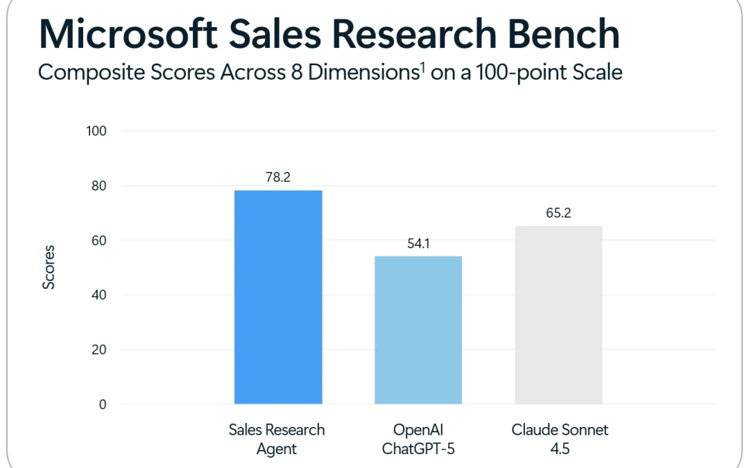 In evaluations executed by Microsoft using the Sales Research Bench framework, the Sales Research Agent in Dynamics 365 outperforms both ChatGPT-5 and Claude Sonnet 4.5. More details on the benchmark methodology and results are available here. We intend to publish the full evaluation package including the 200 benchmark questions and sample dataset in the coming months, so others can run these evaluations themselves.