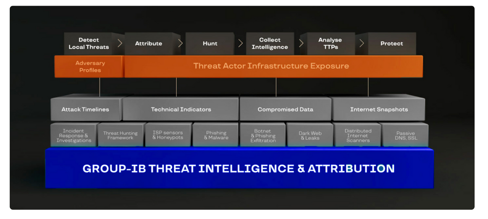Group-IB Threat Intelligence & Attribution (TI&A) is a system for analyzing and attributing cyberattacks, threat hunting, and protecting network infrastructure based on data relating to adversary tactics, tools and activity. TI&A combines unique data sources and experience in investigating high-tech crimes and responding to complex multi-stage attacks worldwide. The system stores data on threat actors, domains, IPs, and infrastructures collected over the last 15 years, including those that criminals attempted to wipe out. The functionality of the system helps customize it to the threat landscape not only relevant to a particular industry, but also to a specific company in a certain country. Below is the high-level architecture of Group-IB TI&A: