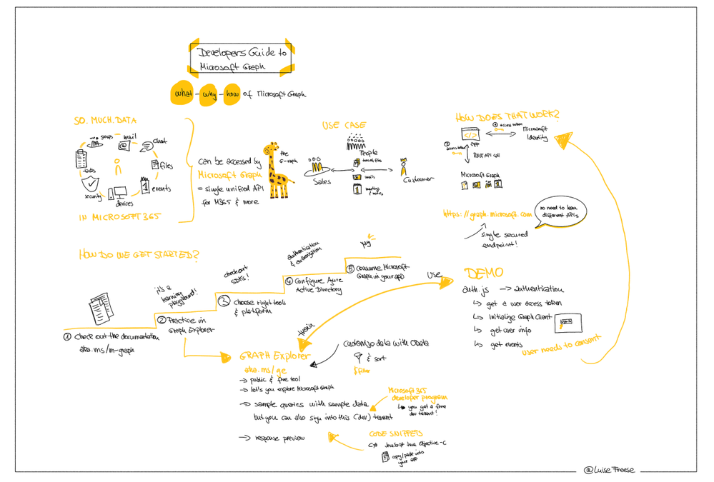 This week, I had the great pleasure to attend Microsoft’s Learn Together: Build apps for Microsoft Graph event. I also did sketchnotes of the event, you may find high resolution files (images, gifs and mp4) are available here on GitHub.