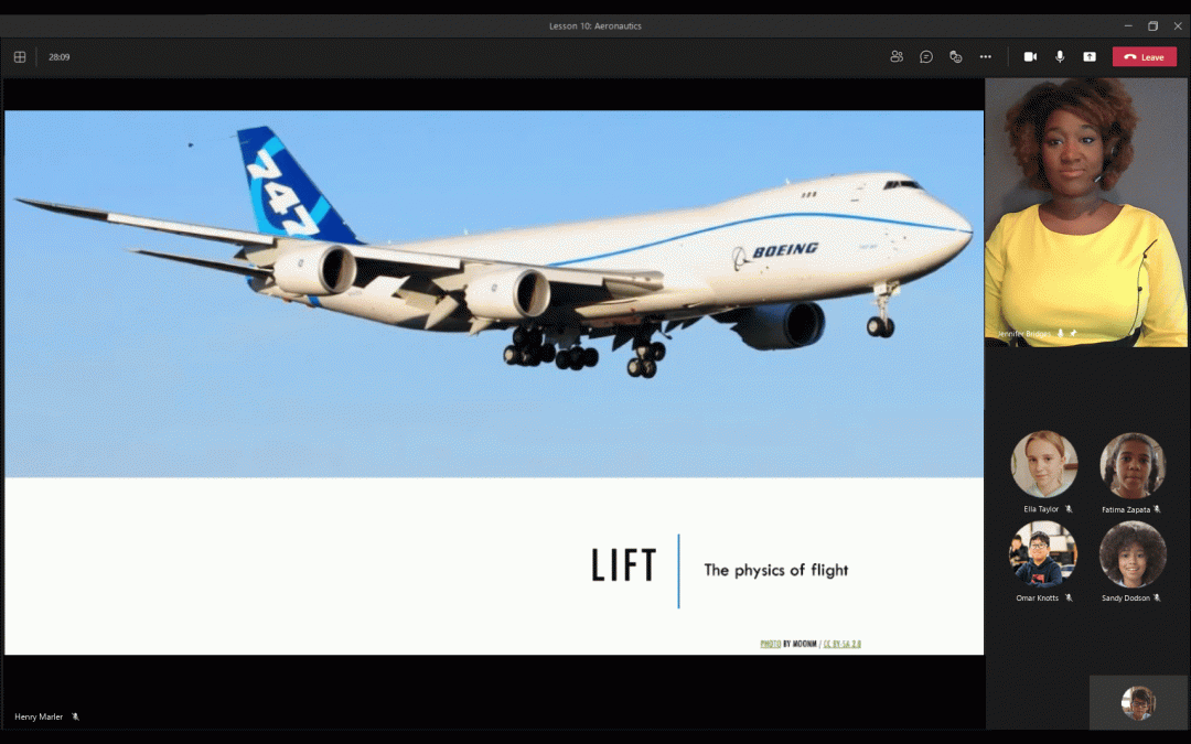 People in a Microsoft Teams meeting where a PowerPoint is shared, and viewer toggles on high-contrast mode