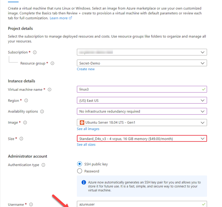 One of the differences that in most case we use SSH keys to access a VM running in Azure. And Azure has a couple ways of storing that information. When creating a VM you can Generate one at deployment, upload your own, or use an existing one already in azure.
