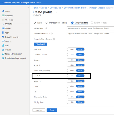 BTW – here’s where you configure TouchID for your setup assistant profile in the Microsoft Endpoint Manager console: