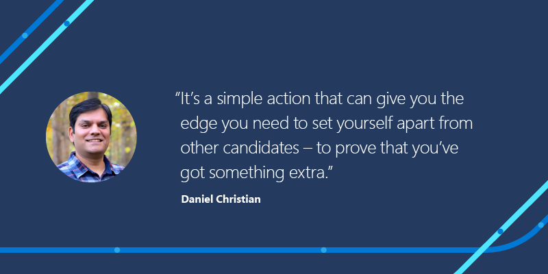 As Daniel Christian, a Microsoft MVP and certified trainer says, “When you earn certifications, in addition to the positive feeling you get, you can also put your badges on LinkedIn and your resume. It’s a simple action that can give you the edge you need to set yourself apart from other candidates – to prove that you’ve got something extra.”